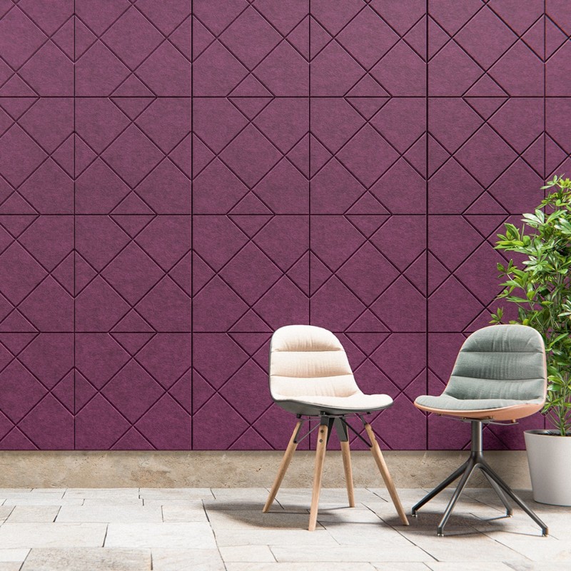 Design géométrique net, confort sonore tangible, pose rapide.