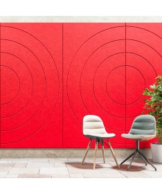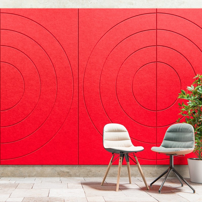 Les panneaux acoustiques GridMax Sunset évoquent la puissance visuelle du soleil à l’horizon. Leurs cercles concentriques apportent rythme, fluidité et chaleur à vos intérieurs. Grâce à leur grand format de 240 × 120 cm, couvrant 2,88 m² par panneau, ils transforment de vastes murs en surfaces graphiques et acoustiques élégantes.
